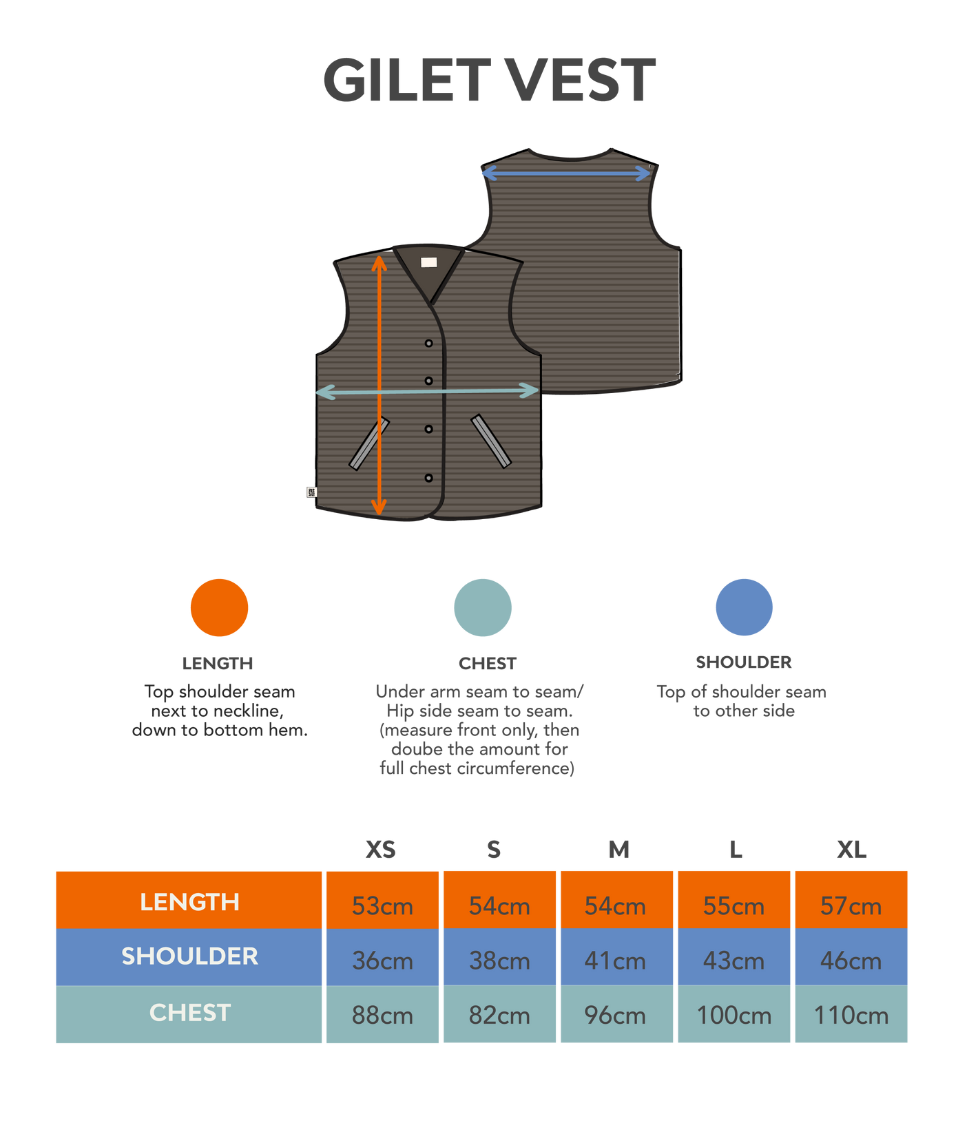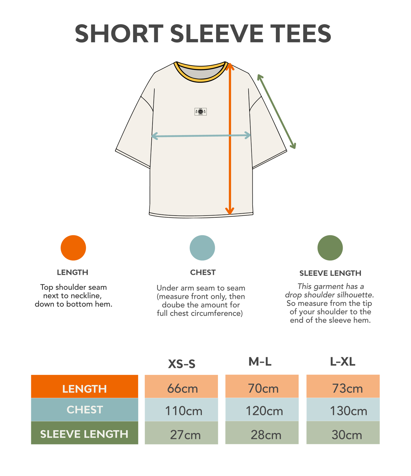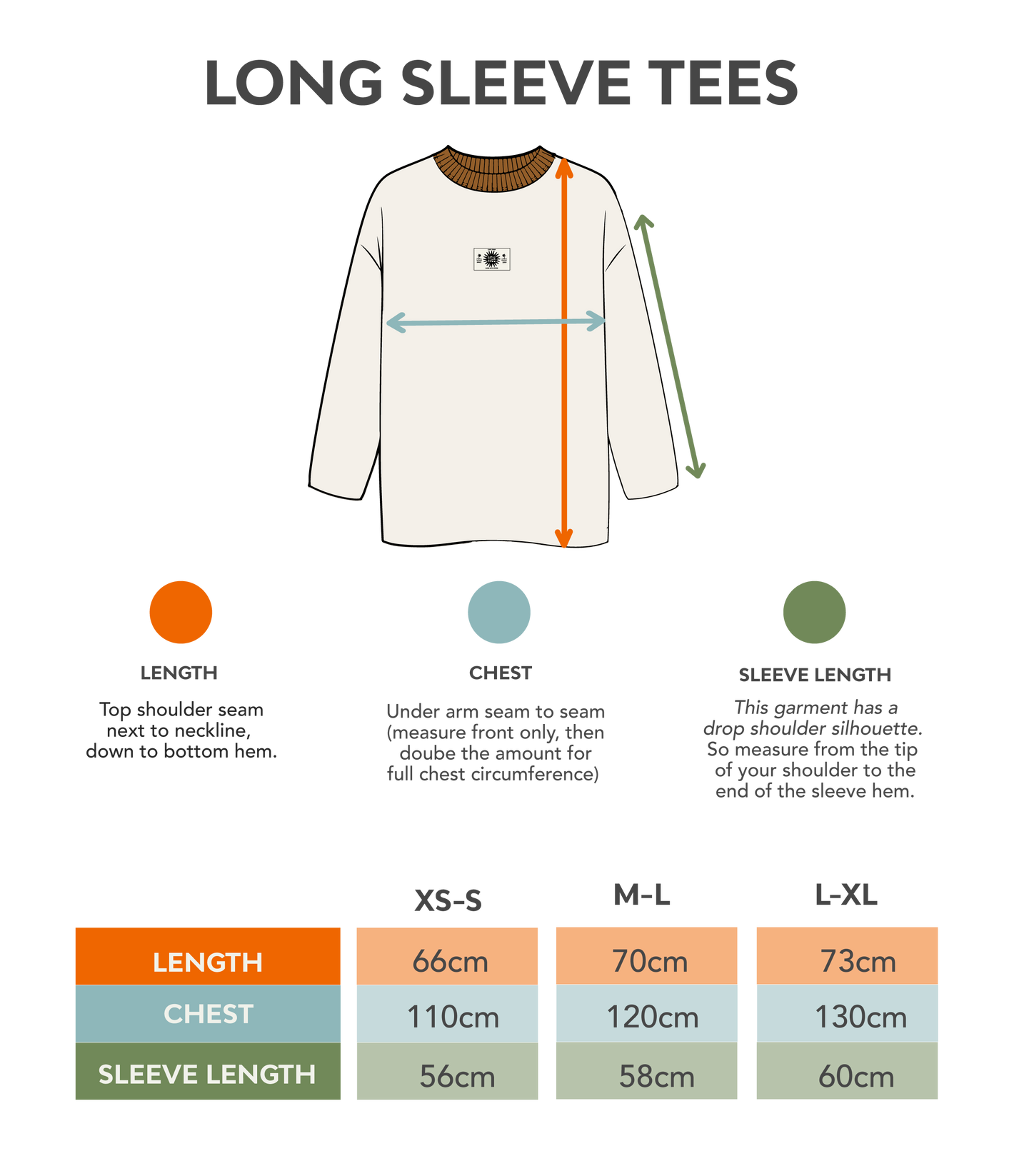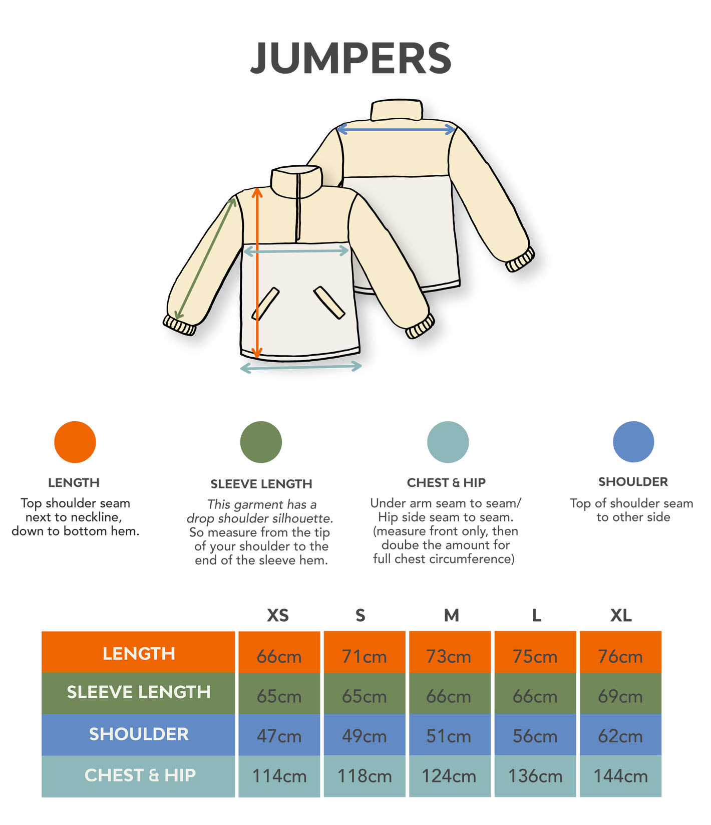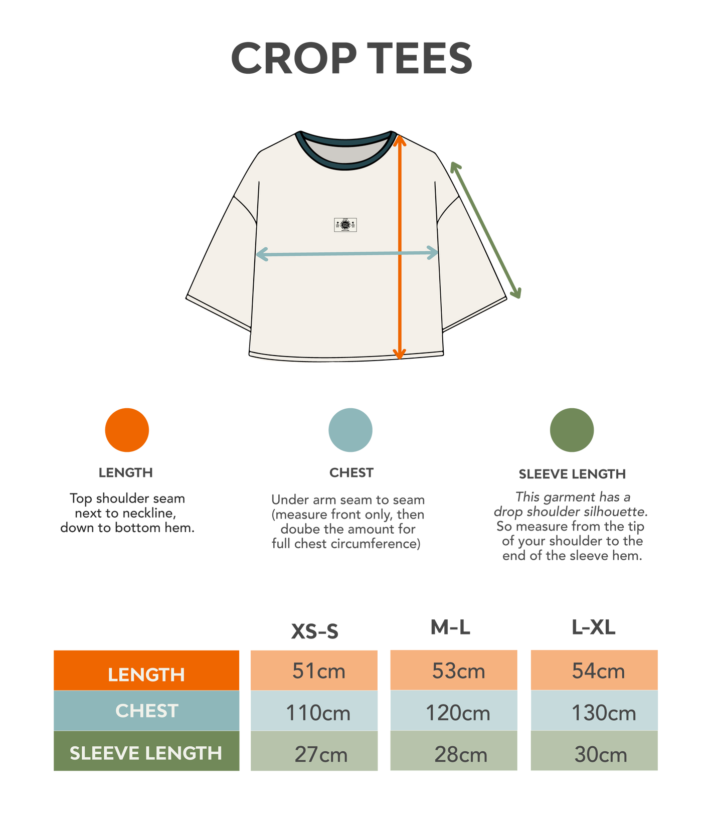 Compare the garment measurements below with a similar piece you already own and love the fit of — it’s the easiest way to find your perfect size.