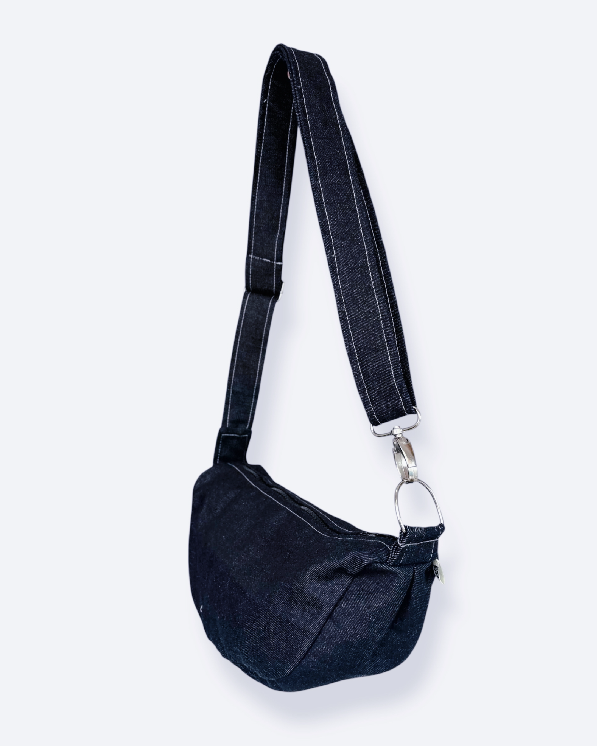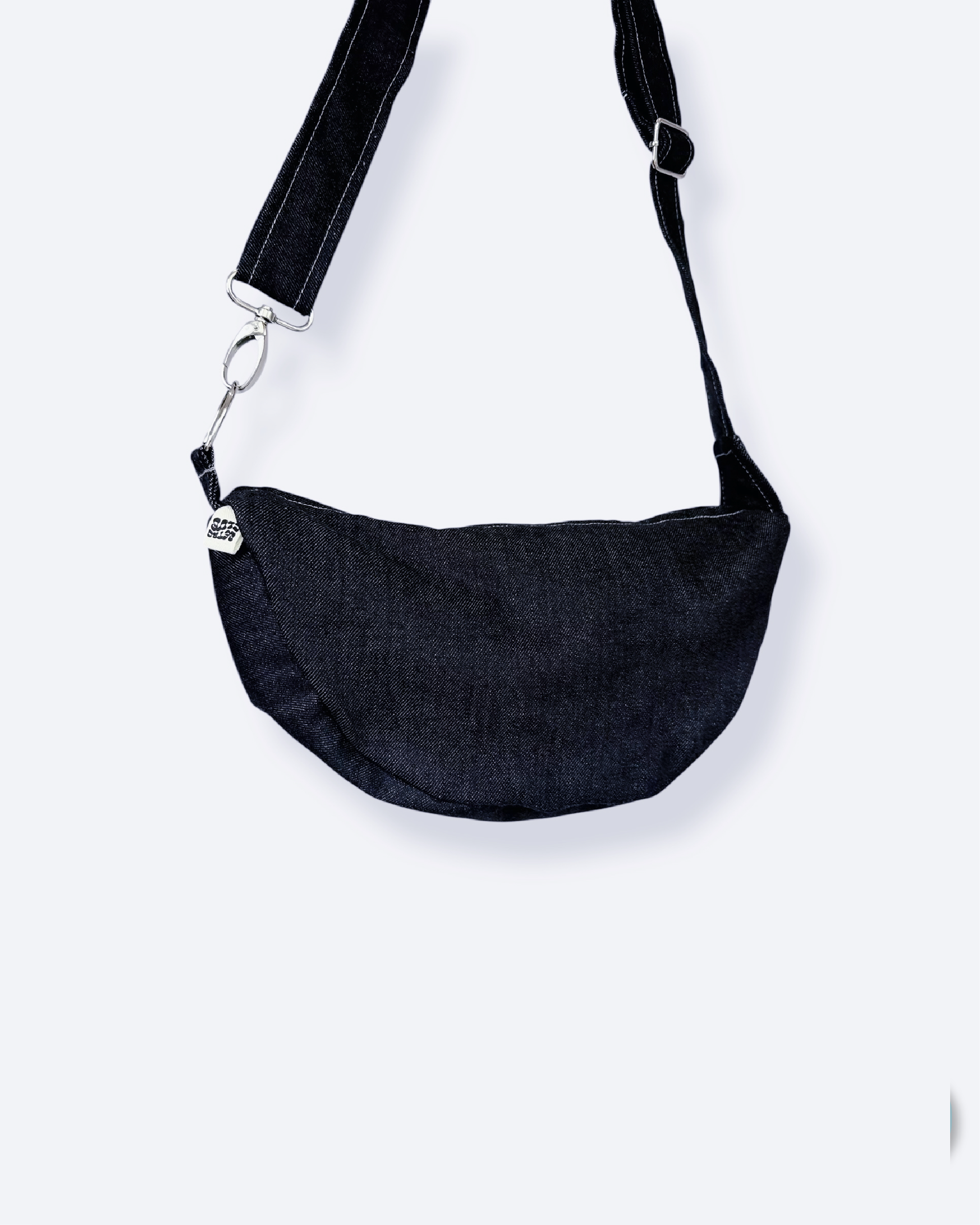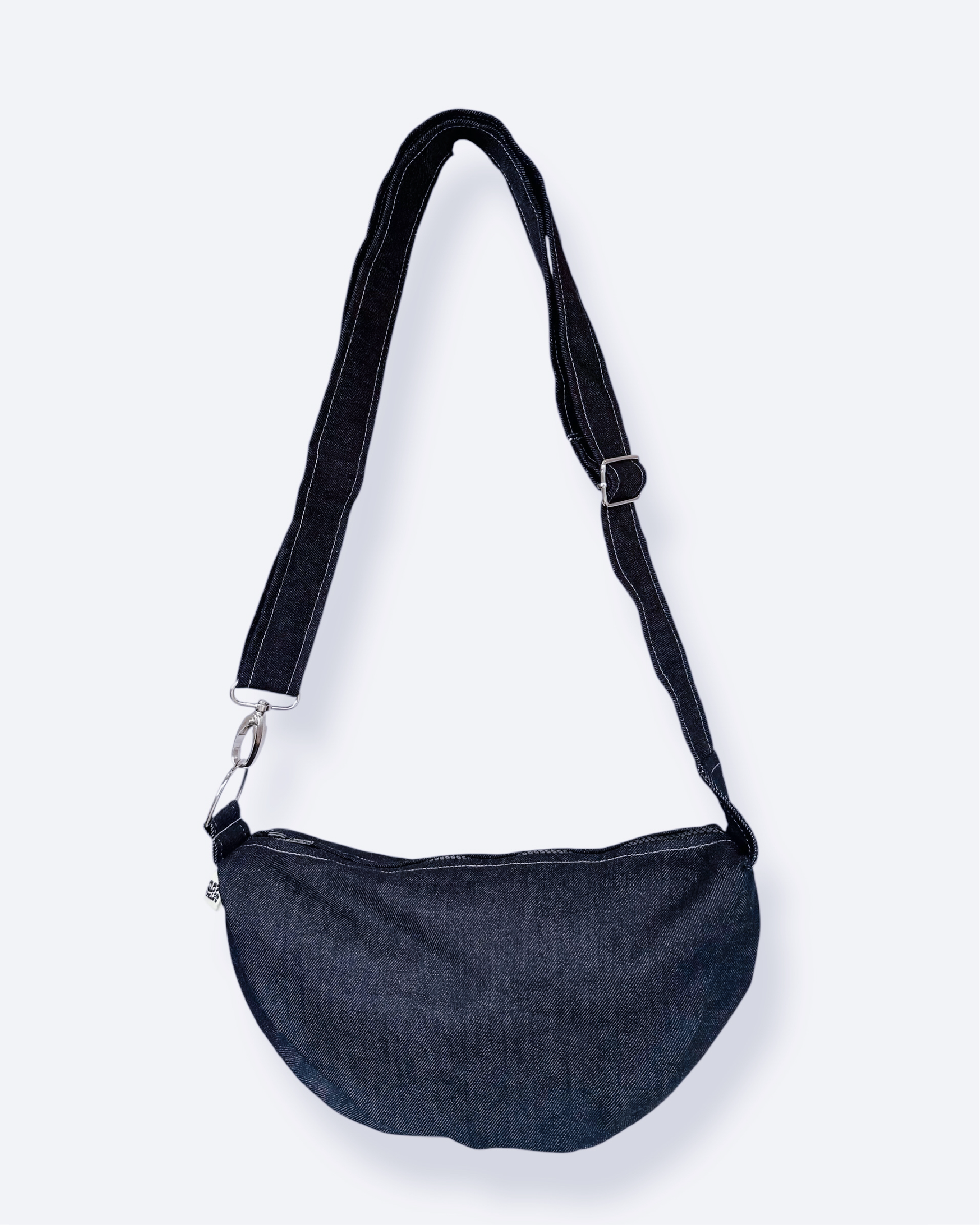 Crafted from dark denim off-cuts with contrast white stitching, this half-moon sling brings a fresh edge to relaxed utility. Durable and just the right amount of structure — it features two inner side pockets, an adjustable strap, and a swivel clasp for easy wear. Customers say it fits more than you’d expect. We say it’s your new go-to for market strolls, city days, and everything in between.