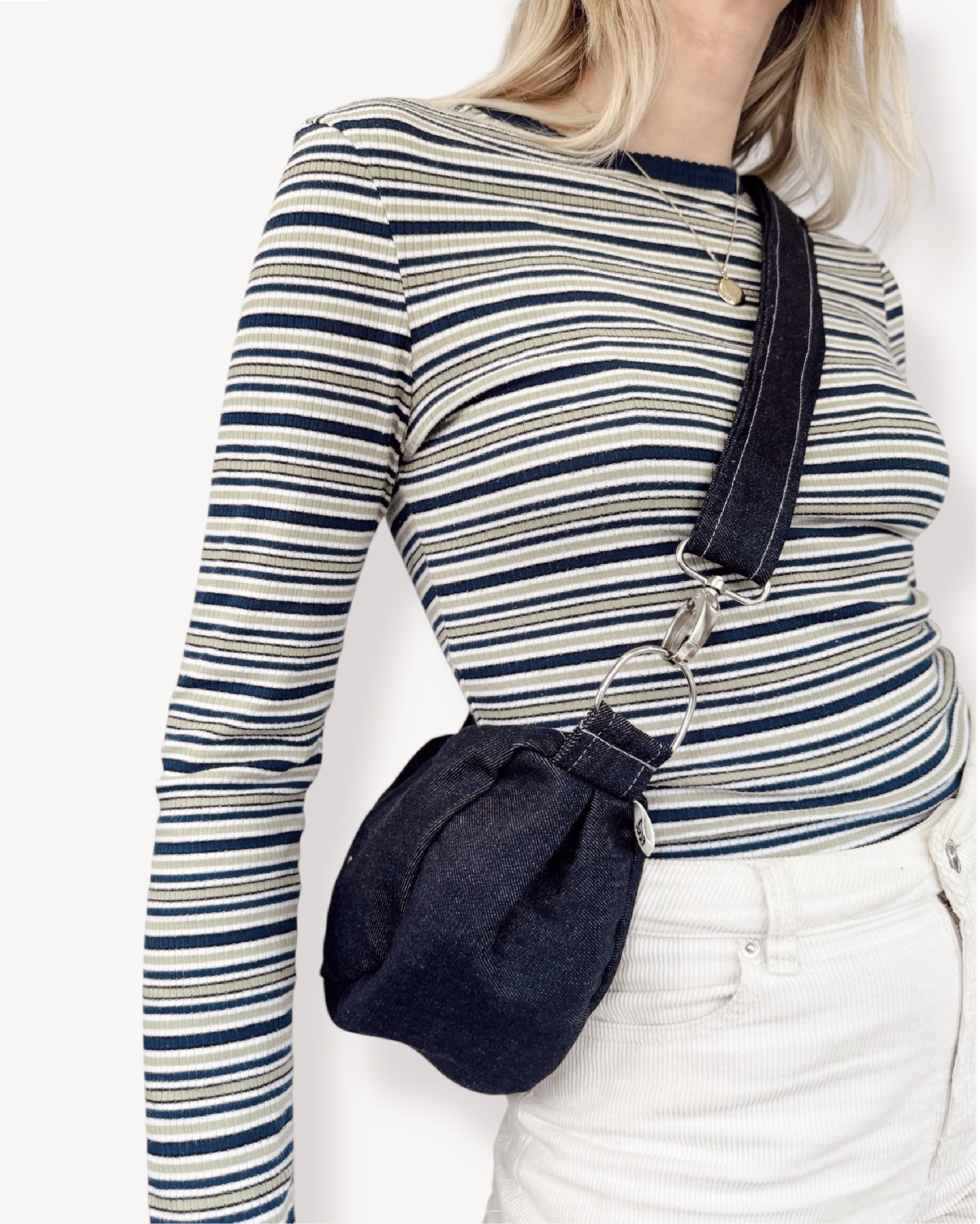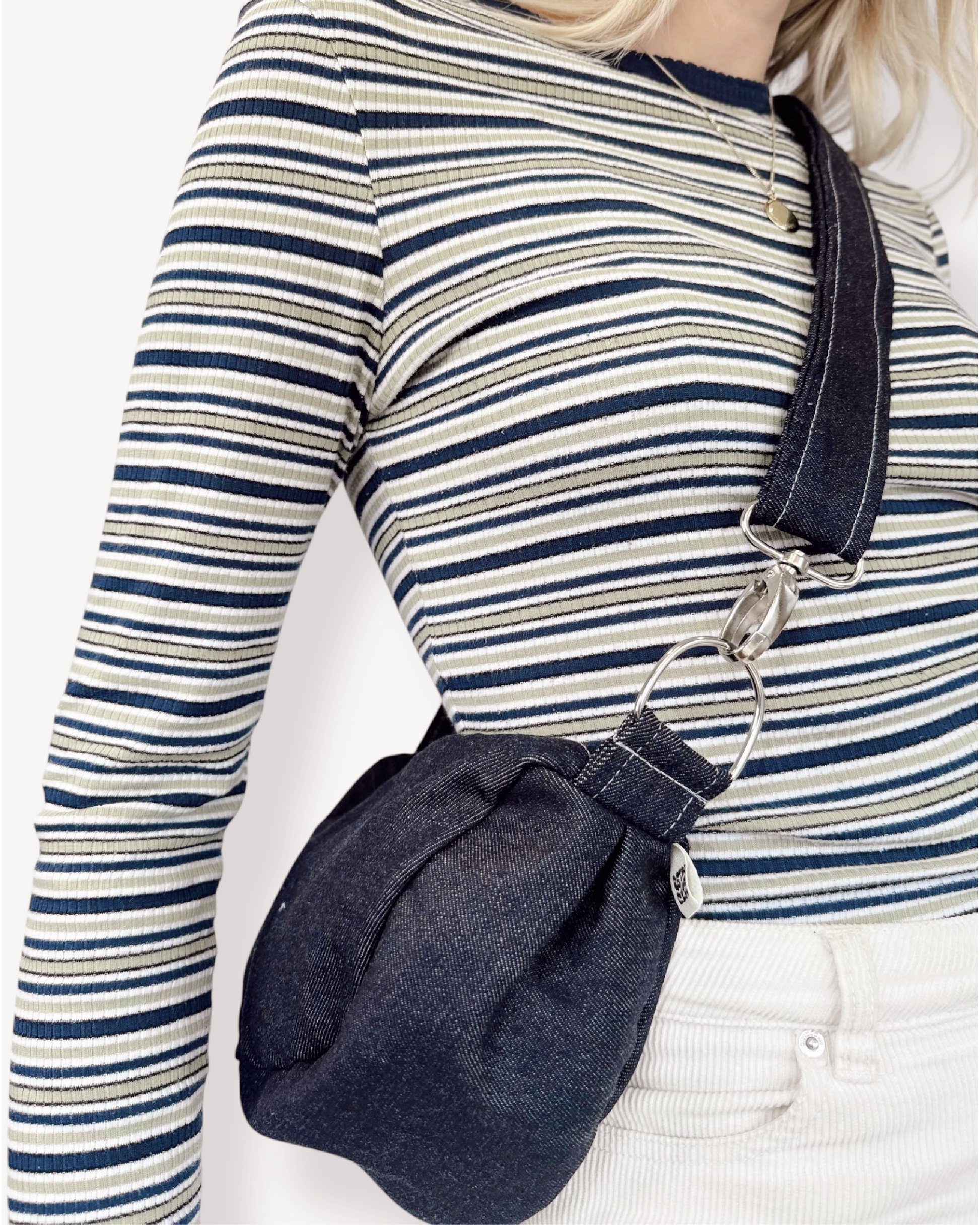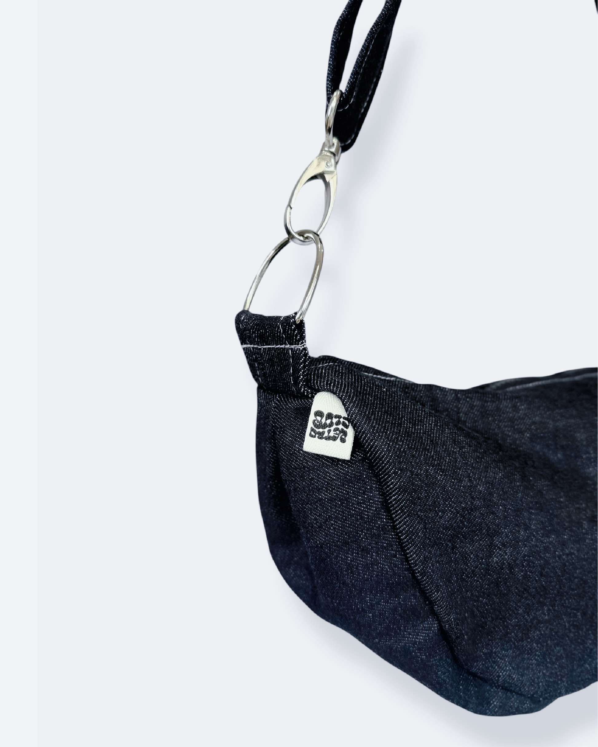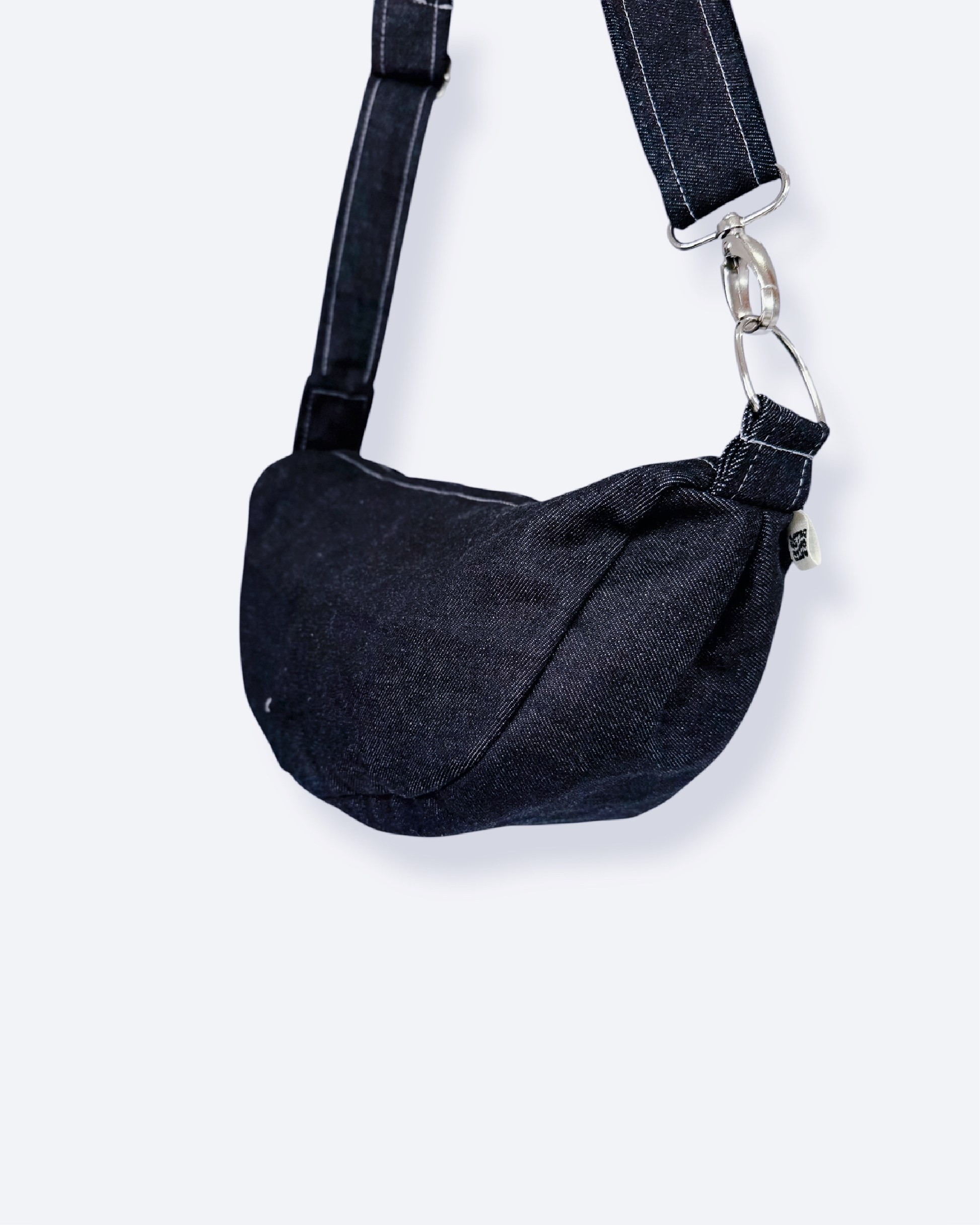 Crafted from dark denim off-cuts with contrast white stitching, this half-moon sling brings a fresh edge to relaxed utility. Durable and just the right amount of structure — it features two inner side pockets, an adjustable strap, and a swivel clasp for easy wear. Customers say it fits more than you’d expect. We say it’s your new go-to for market strolls, city days, and everything in between.
