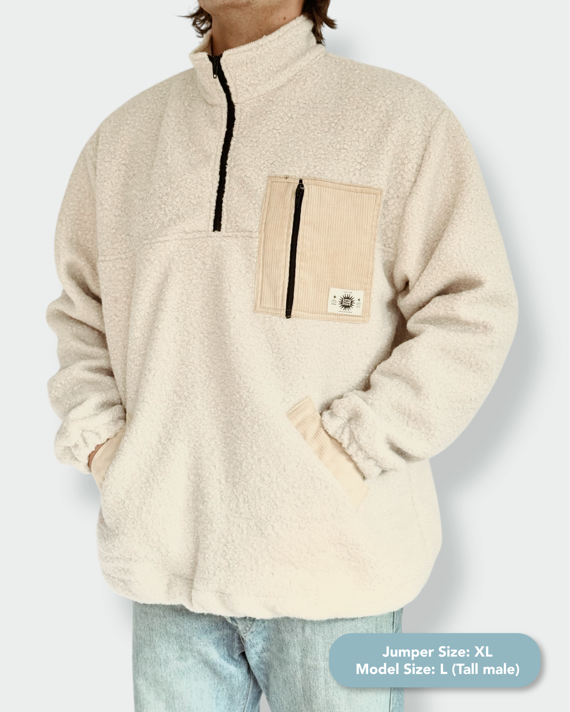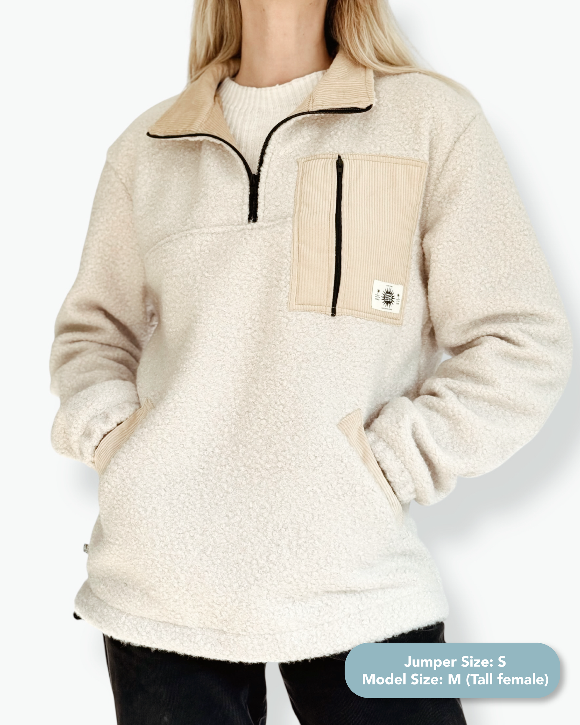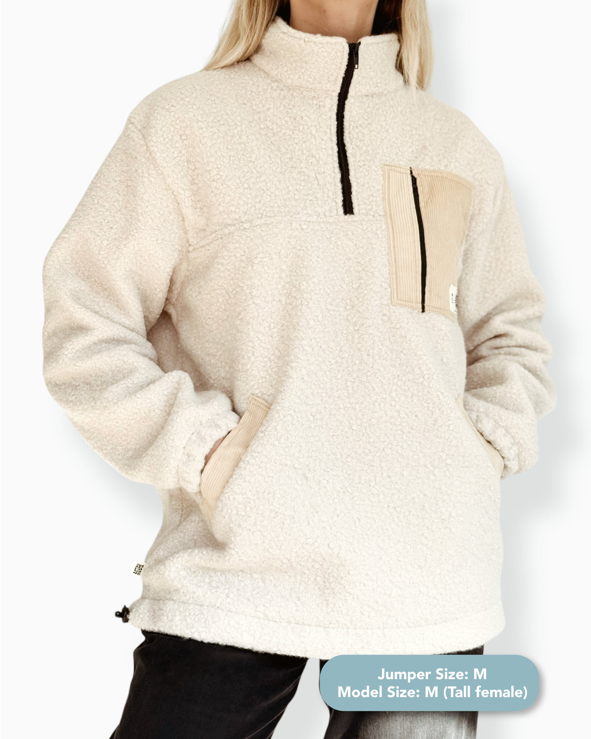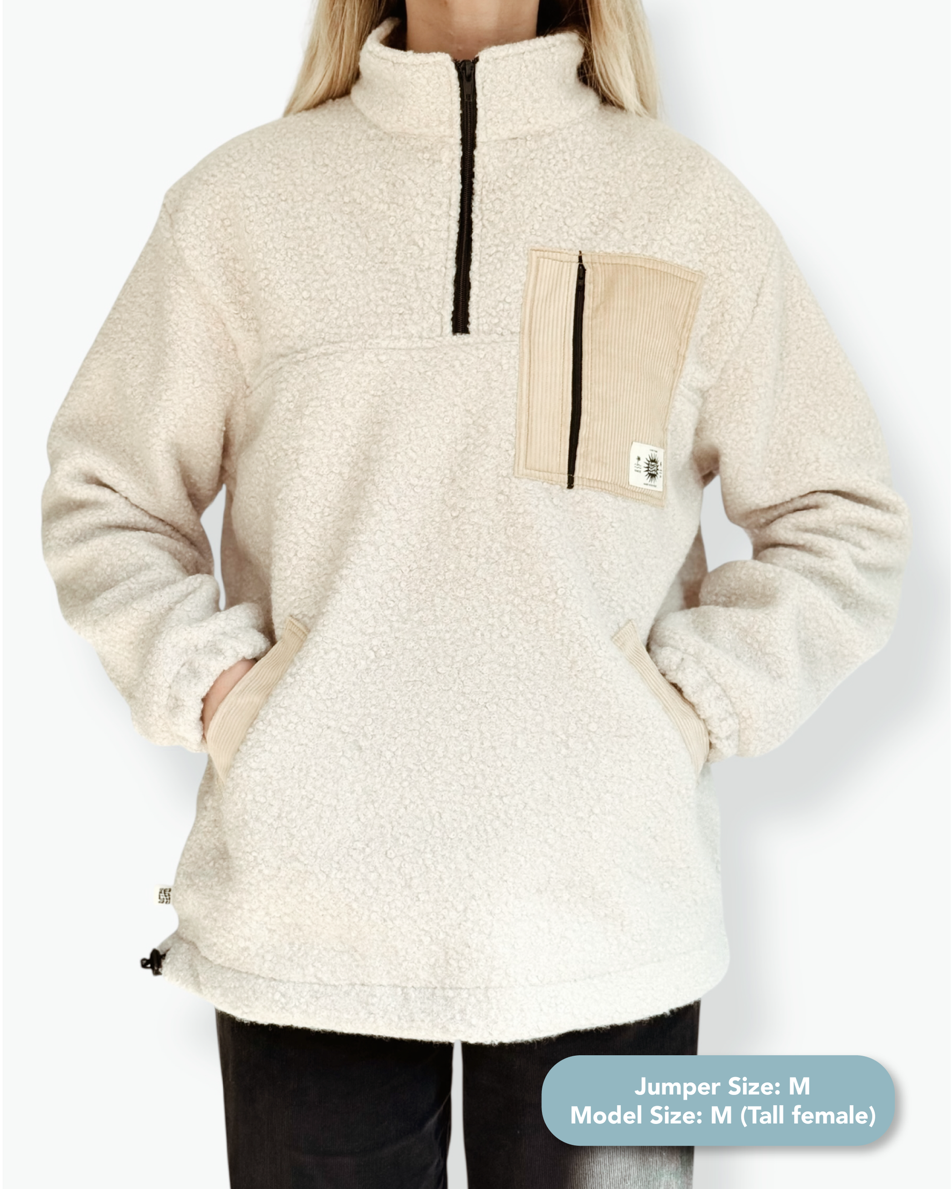 Your new go-to layer this winter. The unisex Summit Jumper is crafted from deadstock polyester sherpa with a soft cotton tee lining - giving this creamy dreamy fit an extra soft, toasty feel.