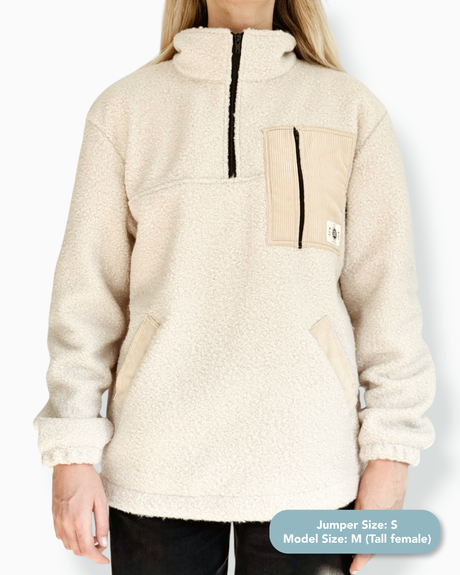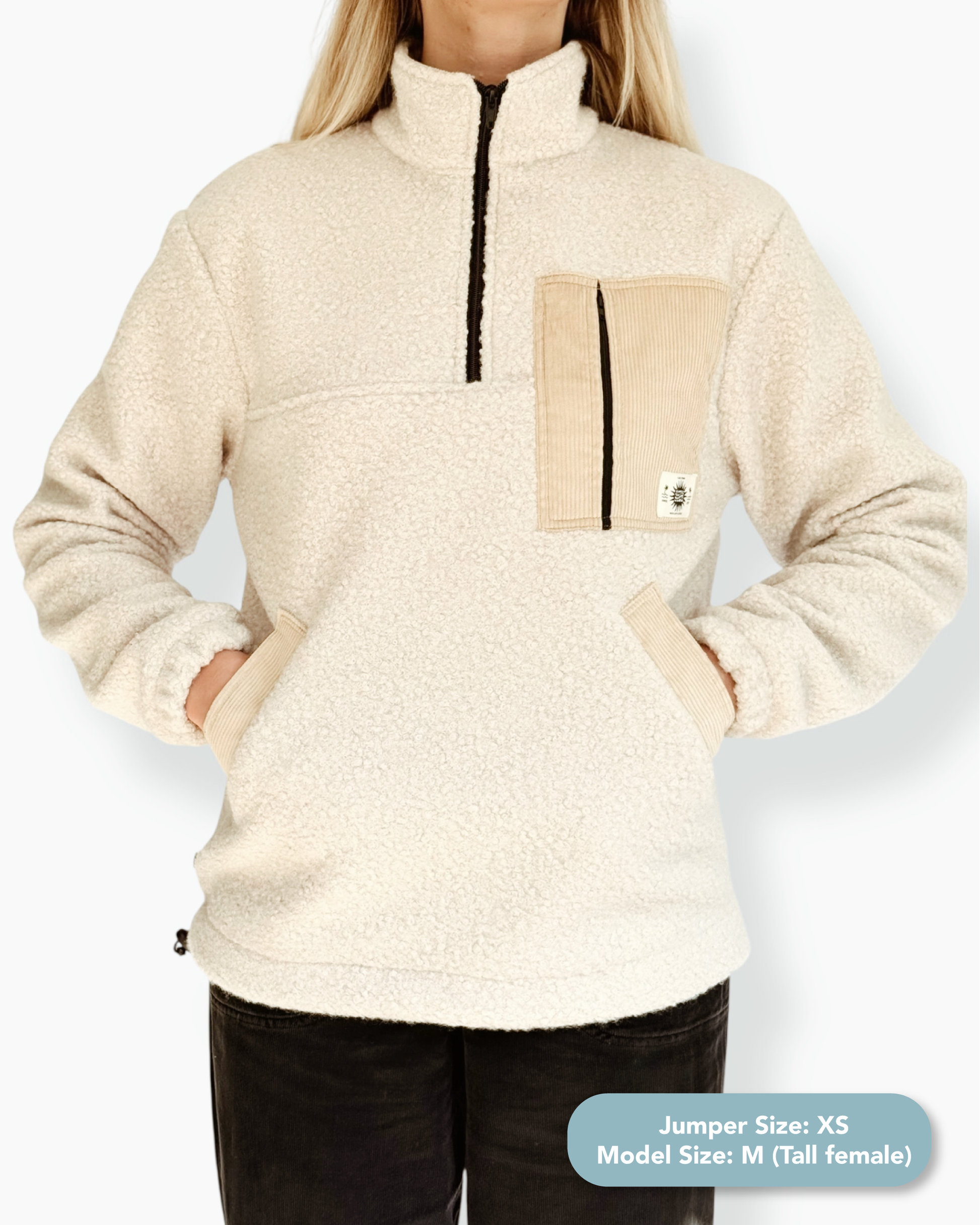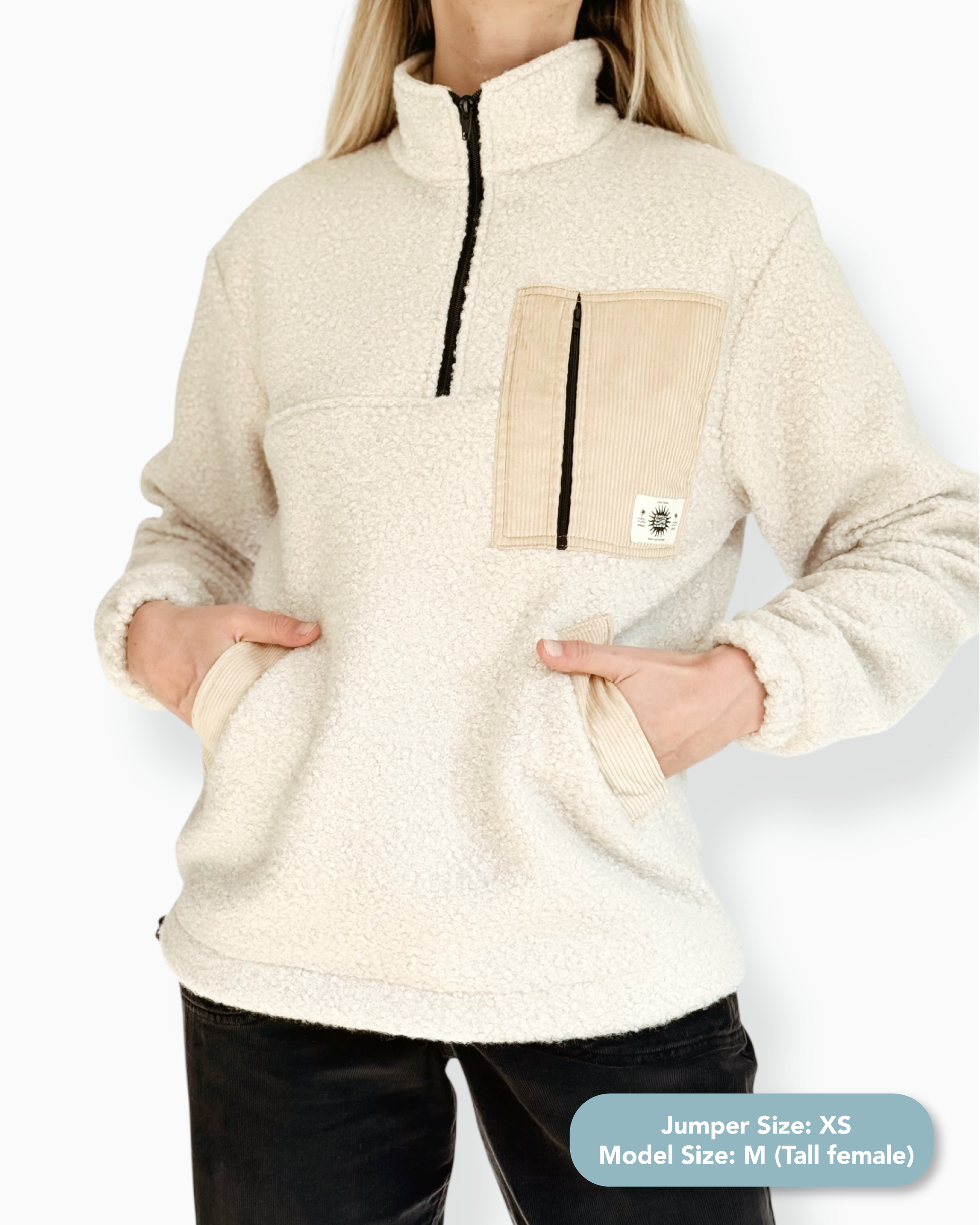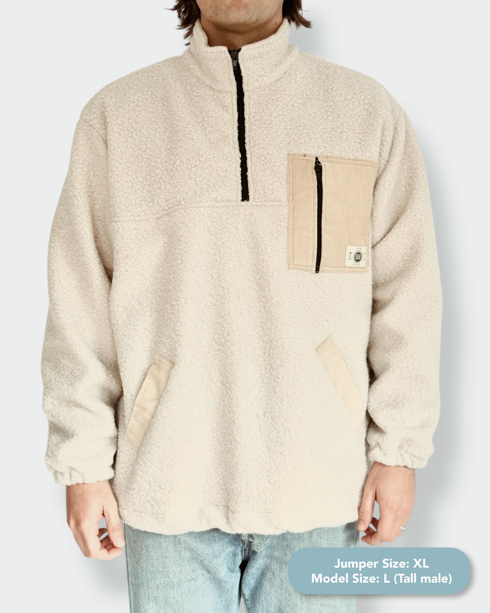 Your new go-to layer this winter. The unisex Summit Jumper is crafted from deadstock polyester sherpa with a soft cotton tee lining - giving this creamy dreamy fit an extra soft, toasty feel.