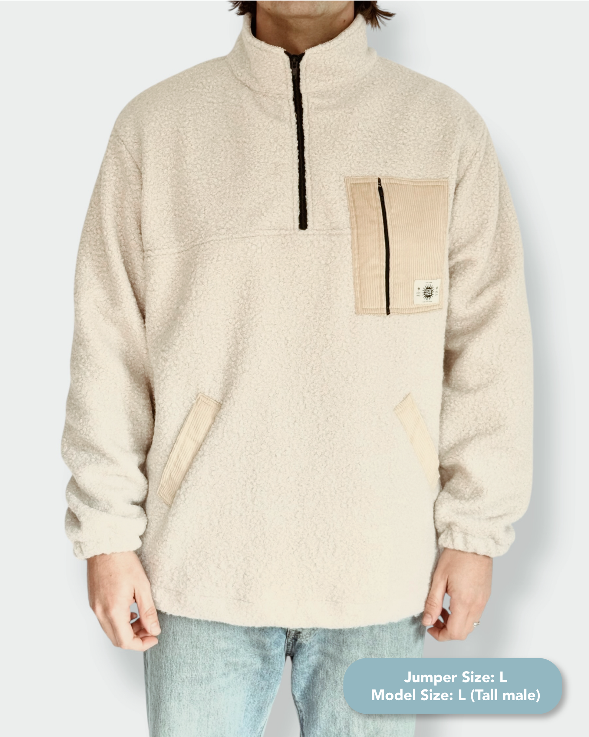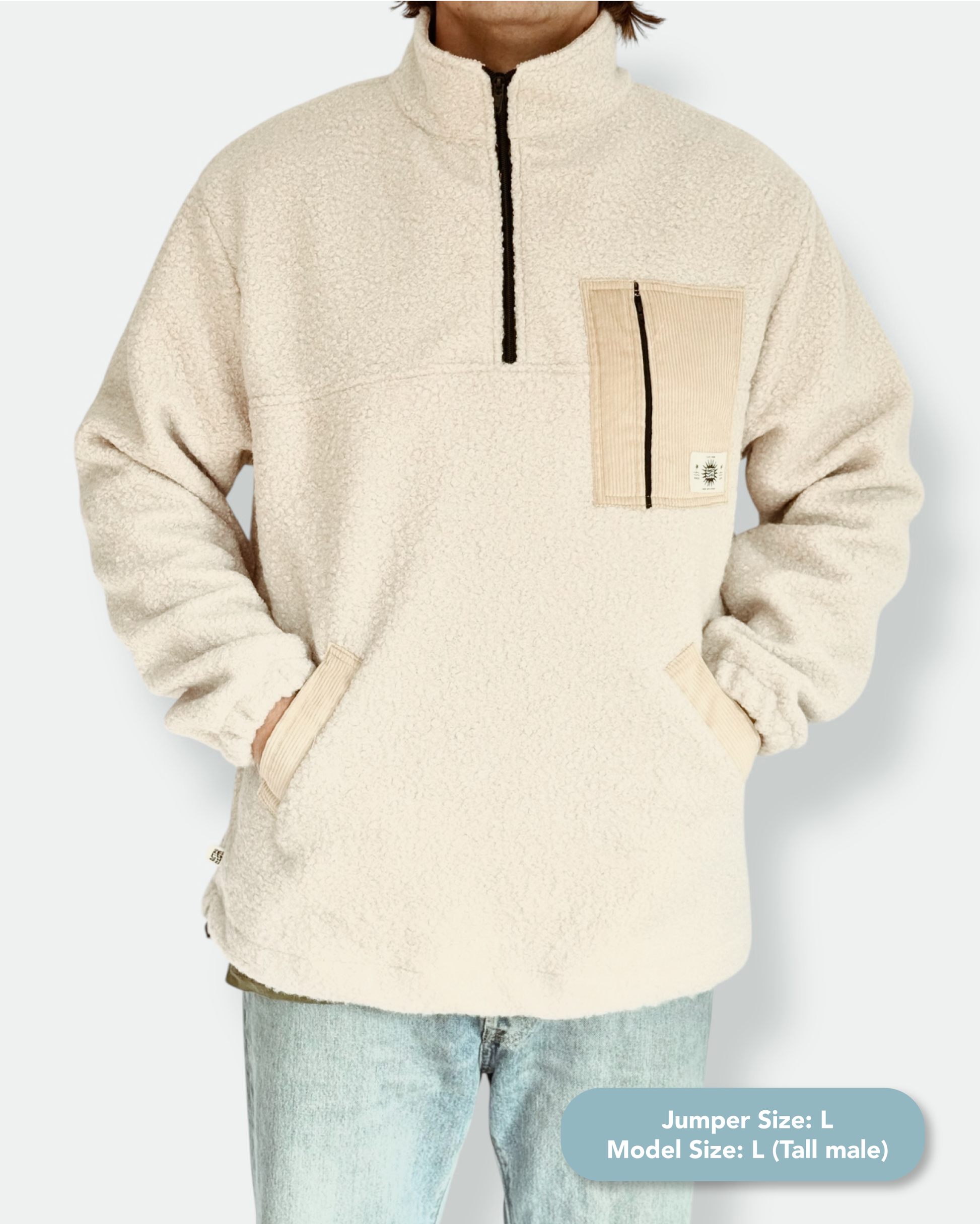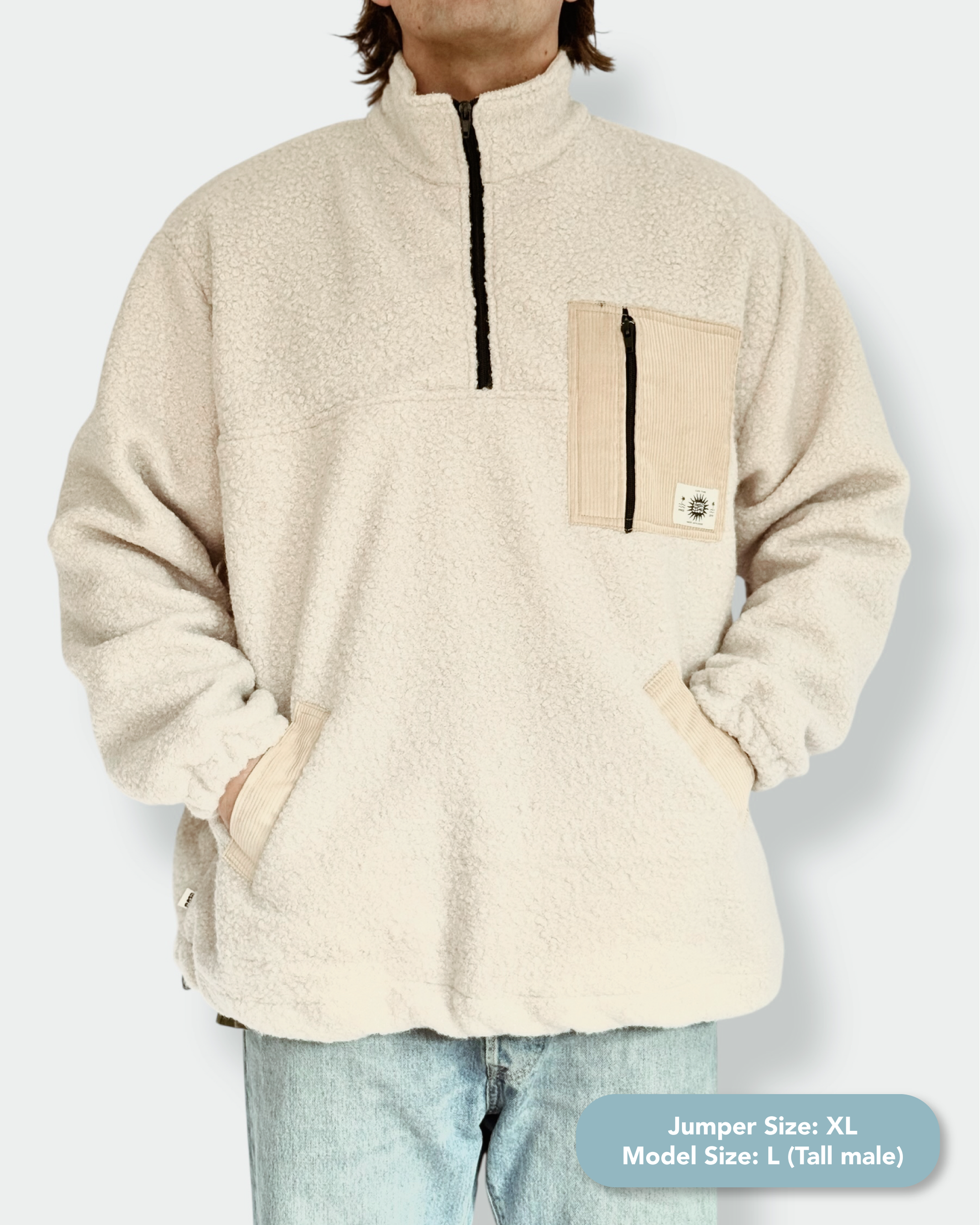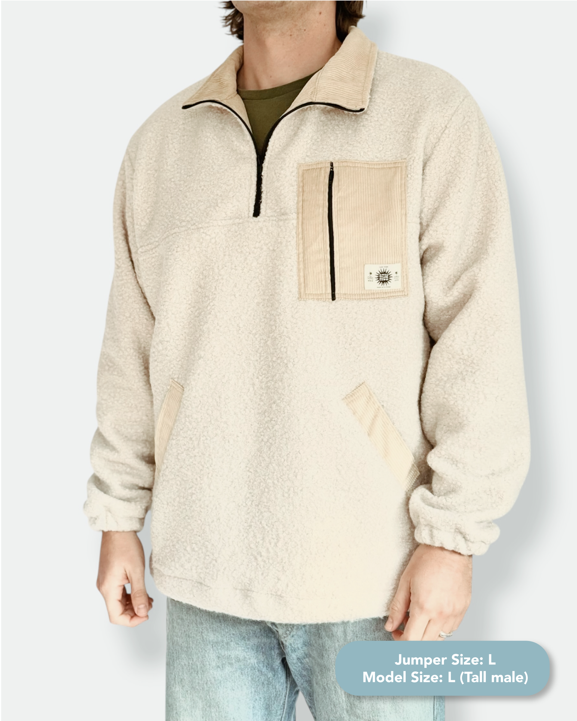Your new go-to layer this winter. The unisex Summit Jumper is crafted from deadstock polyester sherpa with a soft cotton tee lining - giving this creamy dreamy fit an extra soft, toasty feel.