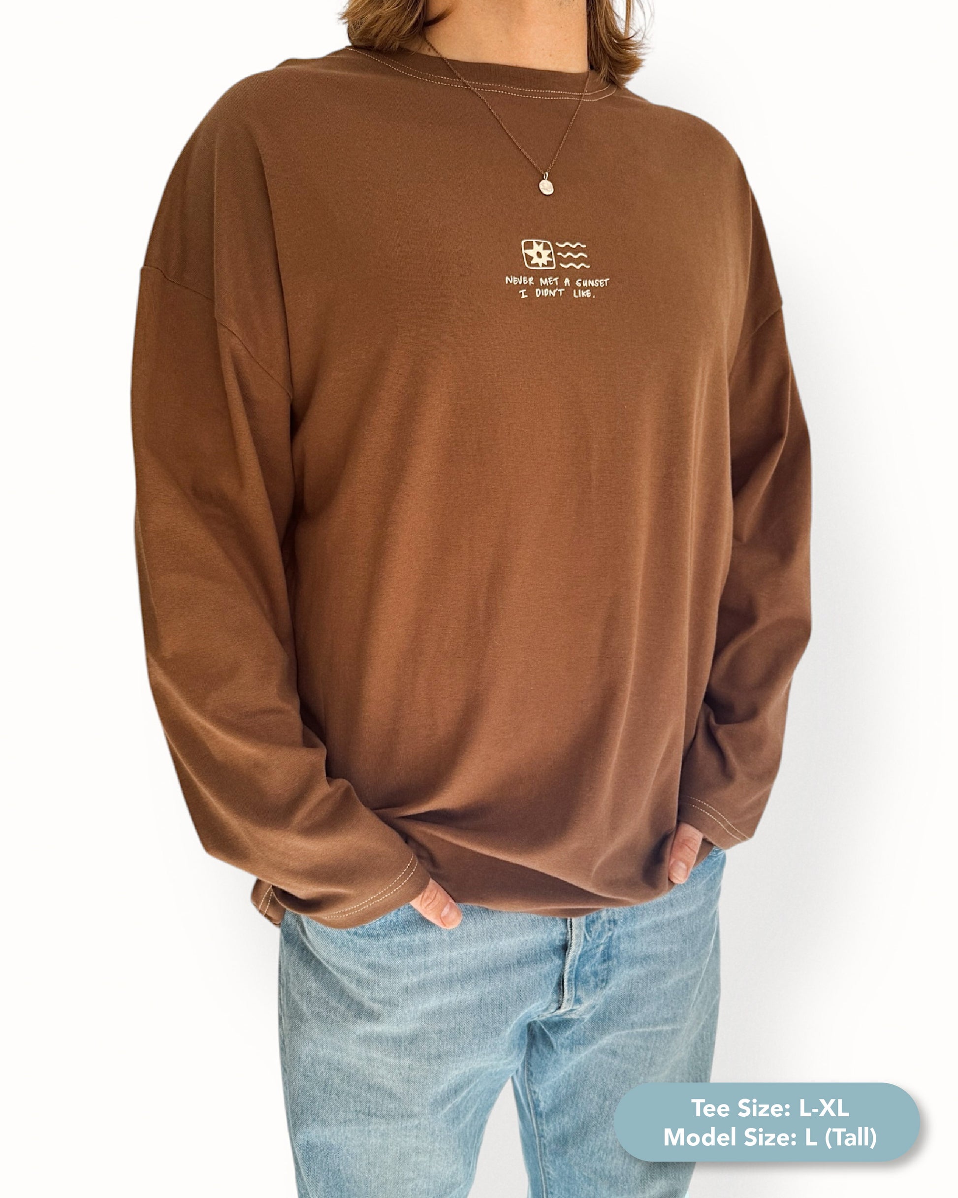The decorative stitching pays homage to retro surf aesthetic, designed with a relaxed, boxy fit and finished in a warm brown tone. Made for slow evenings, salty skin, and chasing light.